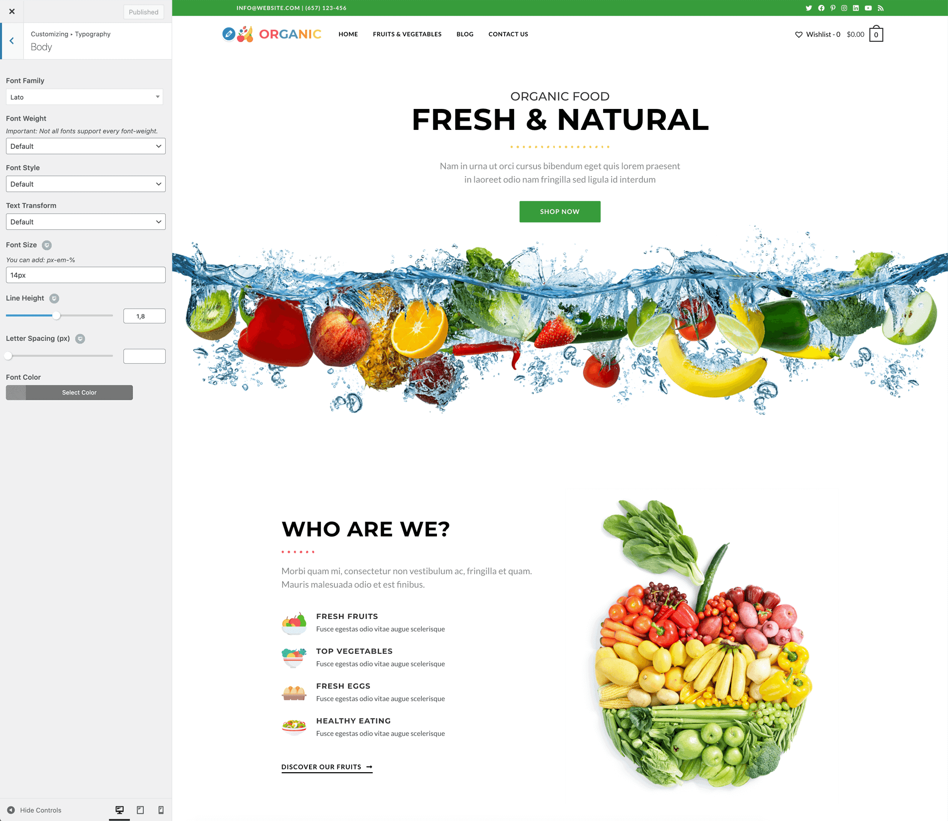 • It offers global typography that lets you choose any google font or websafe font and customize the style, size, text-transform.